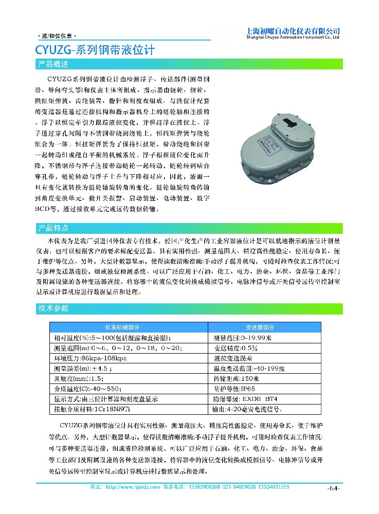 产品概述:上海初曜自动化仪表有限公司